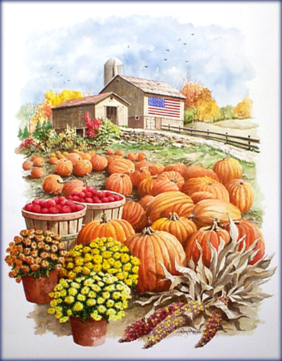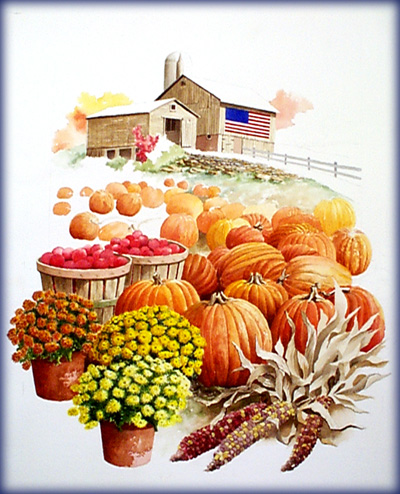 reflect the season, rustic colors of autumn, pumpkins, corn,